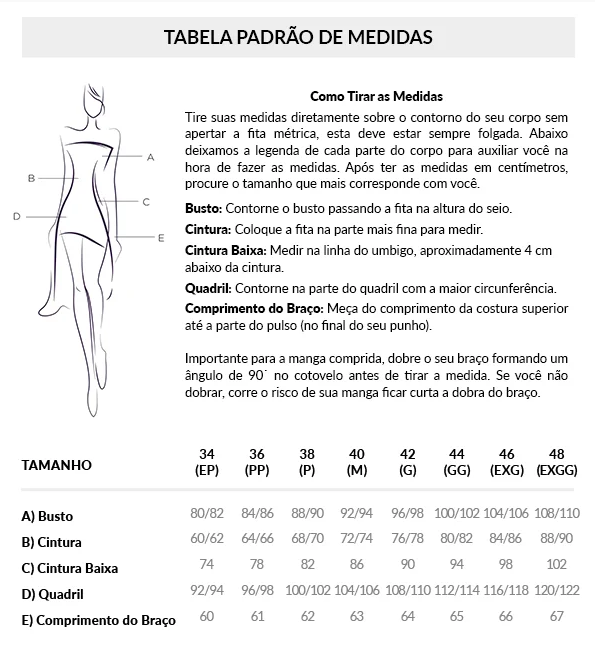 • Composição do tecido: 94% Poliéster 6% Elastano