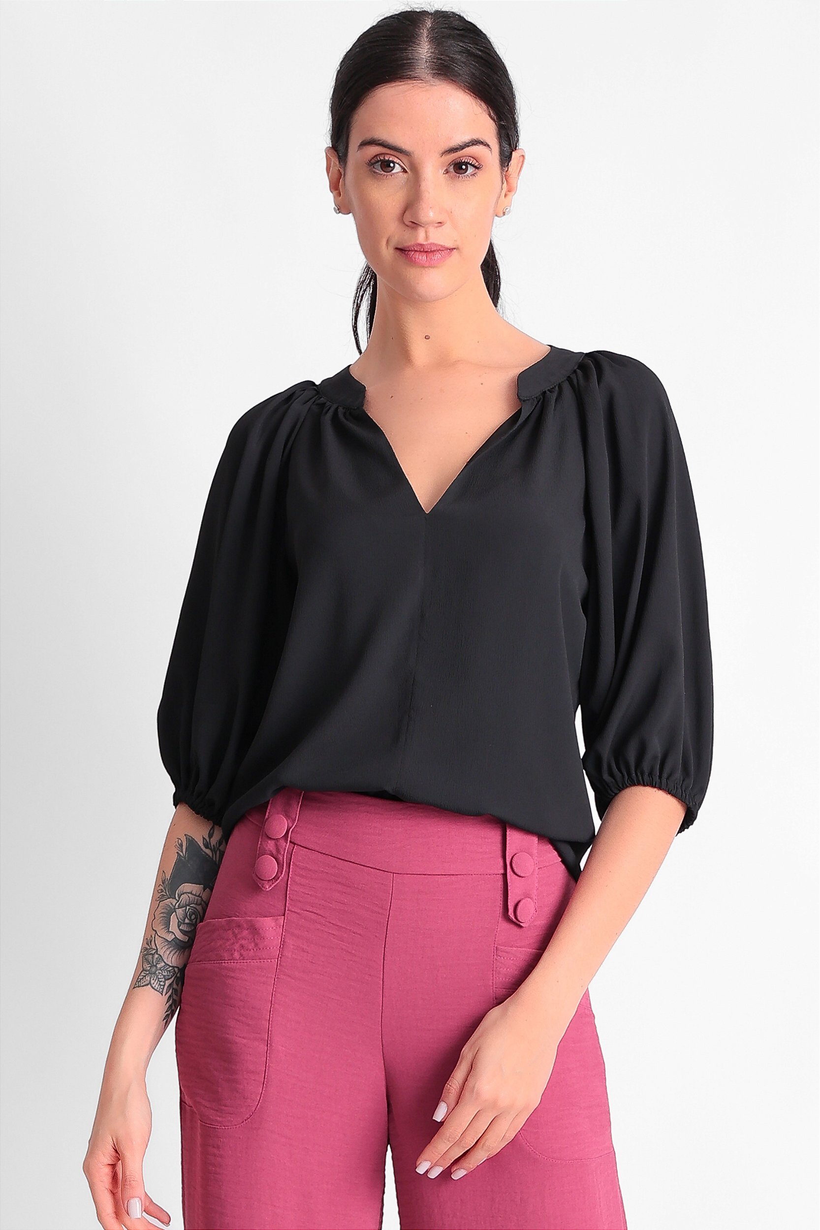 BLUSA MANGA 3/4 CREPE PRETO AYLA