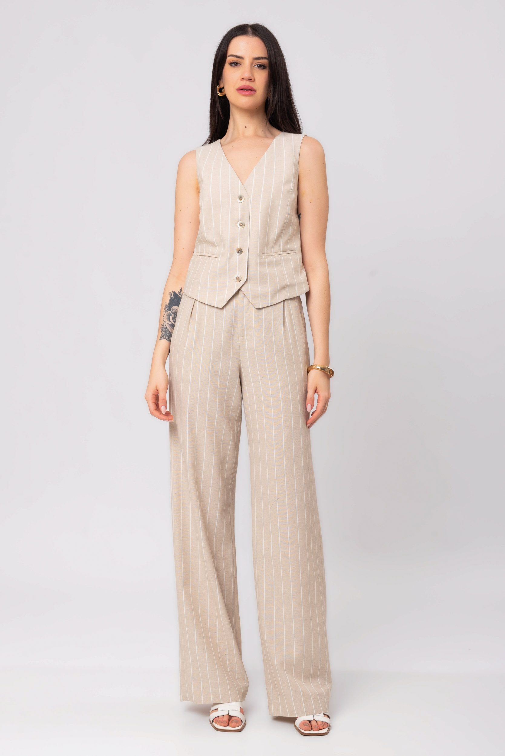 • Composição do tecido: 51,2% Poliéster 22,6% Viscose 10,4% Linho 8,2% Algodão 7,6% Poliamida