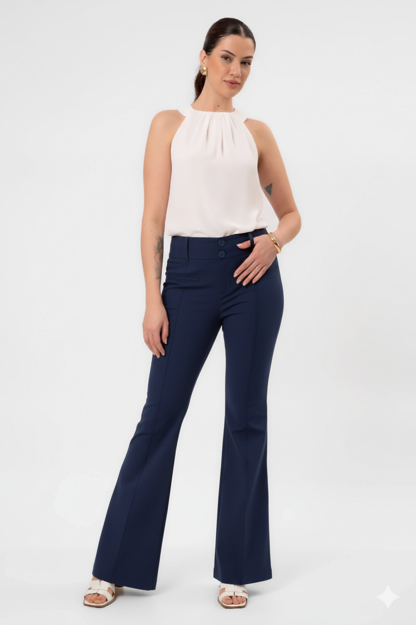 CALÇA FLARE SARJA GABRIELA - MARINHO