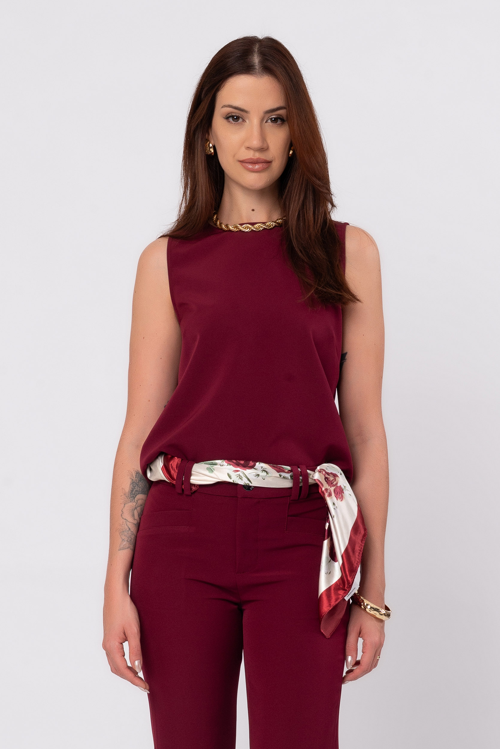 A Regata Florence Burgundy é uma peça elegante e versátil, perfeita para mulheres que buscam um visual moderno e sofisticado no dia a dia. A cor burgundy (vinho) traz um toque sofisticado ao look e é uma tendência atemporal da moda feminina.
